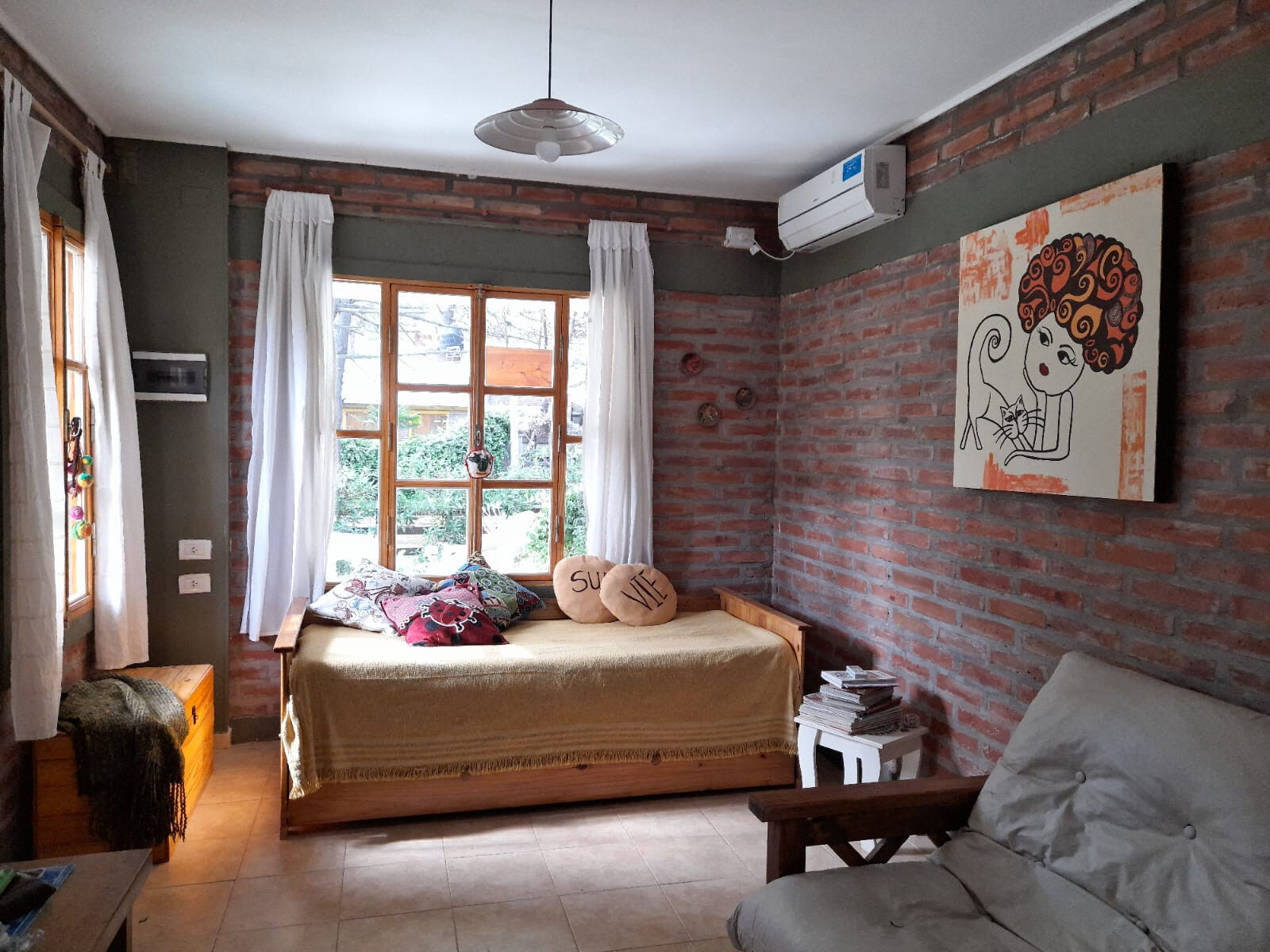 Nuestra  cabaña se encuentra situada en uno de los pocos barrios emplazado en un bosque de pinos que nos permite dar paseos o salir a correr .A  pocos metros del  podes llegar caminando o en vehiculo  a la playa que te recibira con su mar de colores cambiantes de aguas calidas y playas anchas y suaves arenas el resto descubrilo vos !
