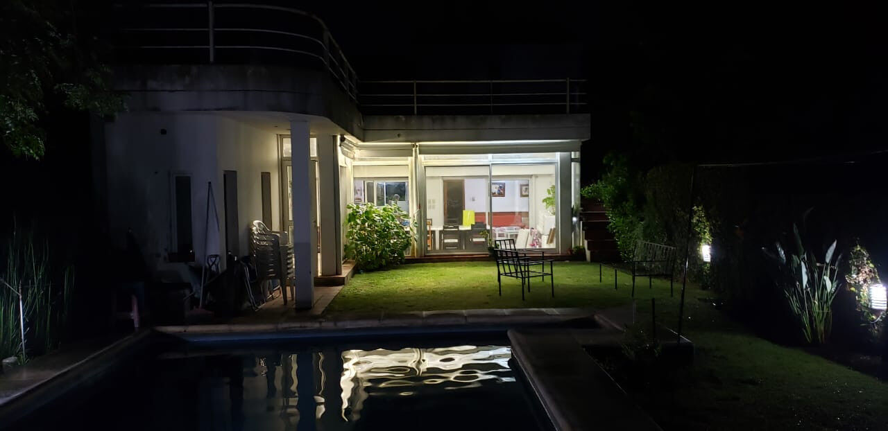 Ubicada en el corazón de Fisherton, a metros de la parroquia Cristo Rey y de la mítica estación Antártida esta casa tiene una excelente combinación de detalles constructivos que permiten disfrutar al máximo su estadía Consta de: 2 dormitorios con cama matrimonial 1 dormitorio con cama cucheta 1 dormitorio en la segunda planta con 2 camas 2 Baños internos 1 Baño externo 1 Comedor con Living integrado en desnivel con TV y Hogar a leña) 1 Cocina comedor con sala de TV 1 Quincho con Parrillero cubierto y cocina industrial Pileta de 8 m x 4 m con perforación para carga de agua de fácil mantenimiento Lavadero Jardín de 180 m2 2 Cocheras cubiertas 2 Cocheras semi-cubiertas TOTALMENTE AMUEBLADA Los dormitorios y la cocina comedor tienen aire acondicionado Cuenta con Televisión por cable y WIFI Supermercado a 1 cuadra Parada de colectivos a 1 cuadra Luz y Gas se abonan según consumo y no esta incluido en el precio de alquiler.Se admiten mascotas Servicio de limpieza a convenir Se alquila SOLO A FAMILIAS O EMPRESAS No se abona comisión inmobiliaria