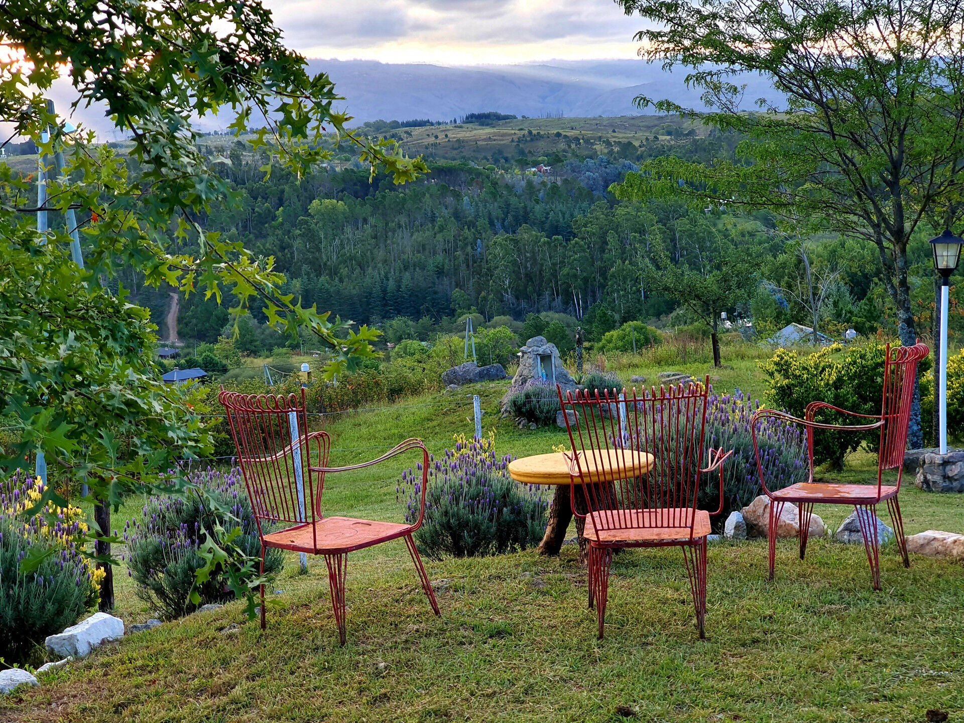 Inmersa en un ambiente natural, forestado y de absoluta tranquilidad, con la mejor vista hacia el imponente cerro Champaqui