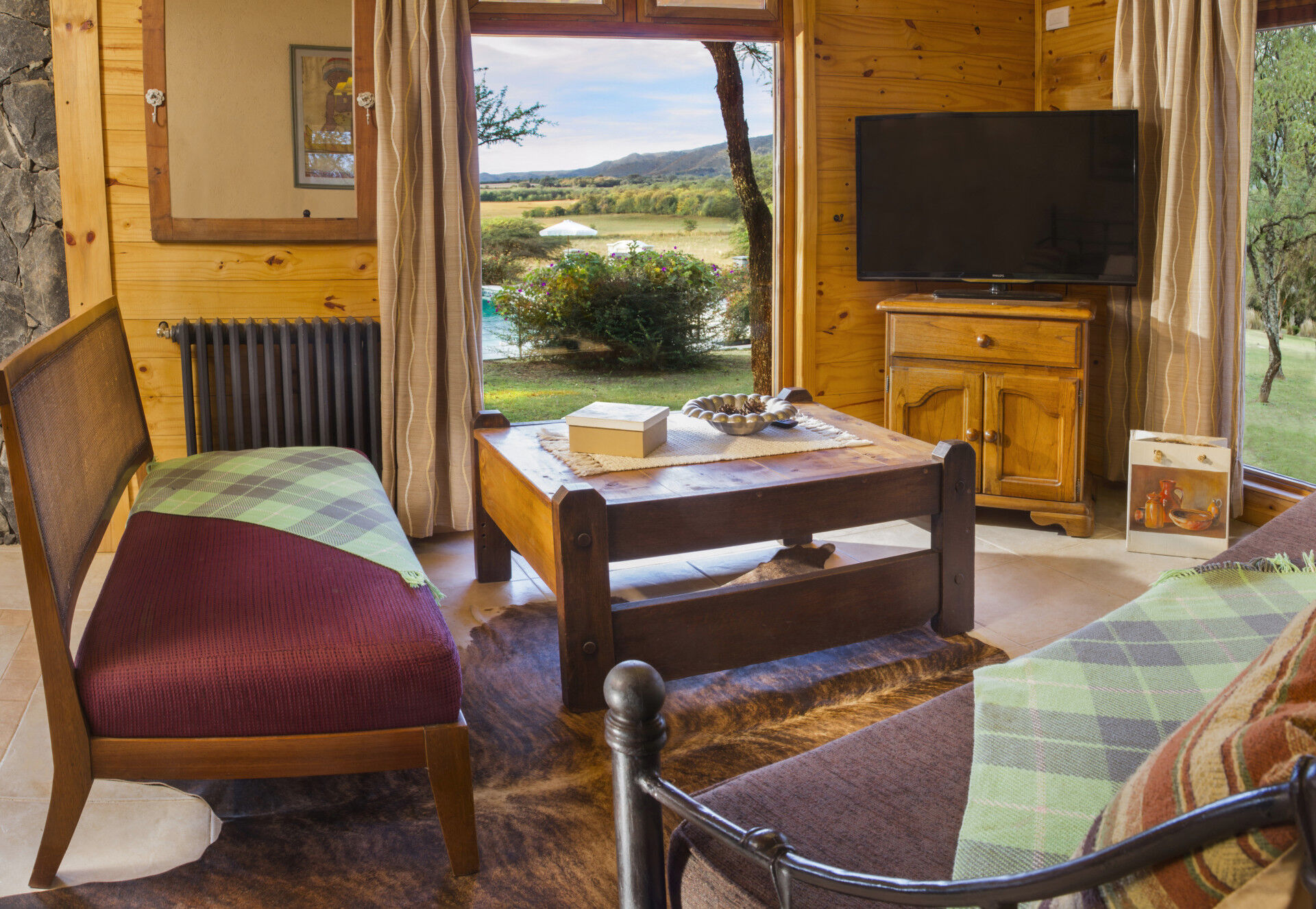 Nuestras cabañas combinan calidez, diseño, belleza y última tecnología, amplia separación entre las mismas, lo que le ofrece a nuestro huésped tranquilidad, descanso y armonía con el entorno
