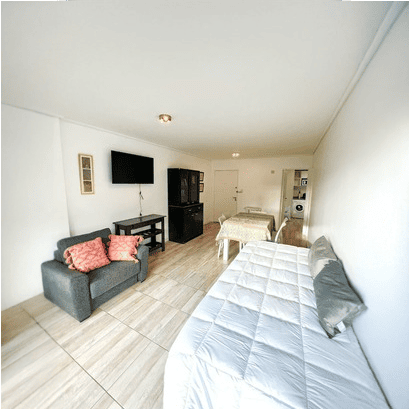 Impecable departamento ubicado a metros del centro civico, con vistas inigualables al mismo y parcialmente al lago. Cuenta con 1 habitación con cama matrimonial, cocina separada, y sofá cama en el living. Importante destacar amplio balcón en la habitación