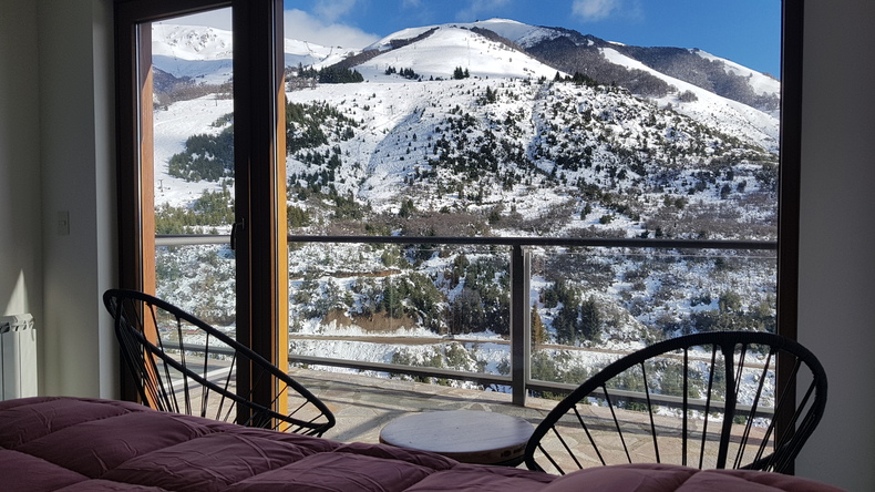 Hermoso monoambiente luminoso equipado para un máximo de 4 personas ubicado en la base del cerro Catedral a 300 mts del cablecarril, frente a las pistas de Condor 1, cuenta con dos somieres simples que se juntan y se arma una cama doble y con un carricama cada uno, cocina y completa, Smart tv 50 ‘ , internet