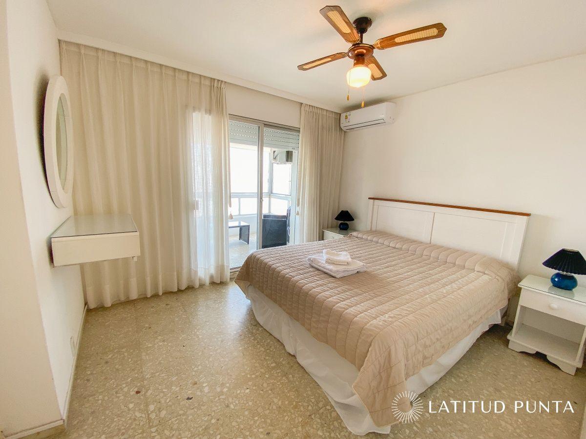 Apartamento en piso alto, con excelentes vistas a Mansa y Brava. Cuenta con 2 dormitorios y 2 baños completos, cocina definida con lavadero, amplio living-comedor y balcón. Aire acondicionado en living-comedor y dormitorio principal. Garage en subsuelo. Edificio clásico de Punta del Este, sólida construcción, con servicio de mucamas, recepción 24hs, gimnasio, mantenimiento, lavadero y sala de tv. periodos disponiblesprecioenero (2da Quincena) usd3, 300Febrerousd5, 000Febrero (1er Quincena) usd3, 200Febrero (2da Quincena) usd3, 200