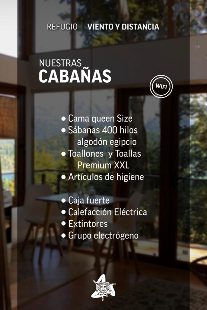 Las Cabañas  se desarrollan en una planta con acceso independiente, cada una  cuenta con un balcón terraza con vistas inigualables al bosque, los cerros y el lago. Ingresando  encontramos una sala de estar comedor ,  cocina completa y subiendo un pequeño desnivel el dormitorio y el baño. Todo perfectamente equipado para tener una estadía magnifica en un ambiente acogedor y relajado.